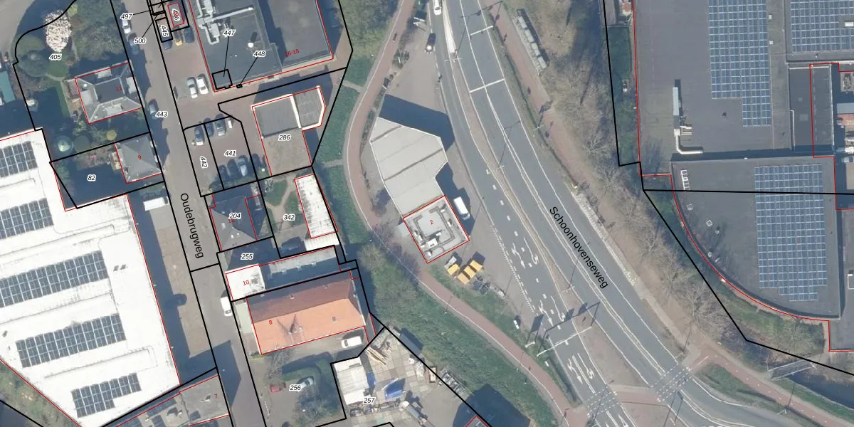 Het perceel waarop Schoonhovenseweg 2 staat heeft een oppervlakte van 3,9 ha. Dit is een zeer groot perceel. De perceeloppervlakte wordt geregistreerd door het Kadaster. Gedetailleerde informatie over de maten van dit perceel kunt u vinden in het rapport Kadastrale kaart met maatvoering van Schoonhovenseweg 2.