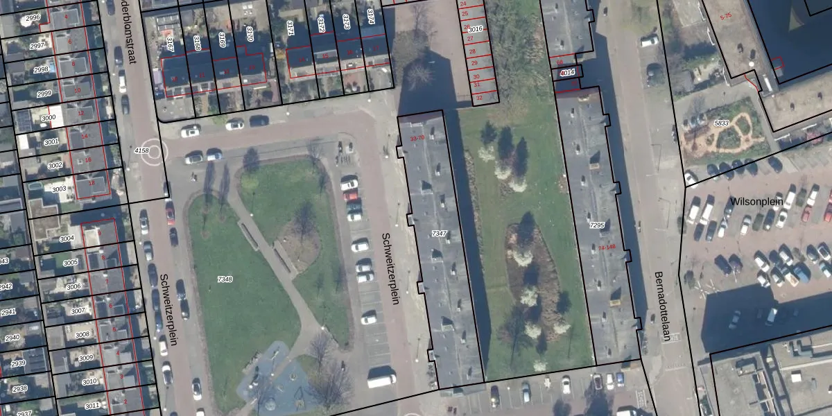 Het perceel waarop Schweitzerplein 43 staat heeft een oppervlakte van 743 m². Dit is een groot perceel. De perceeloppervlakte wordt geregistreerd door het Kadaster. Gedetailleerde informatie over de maten van dit perceel kunt u vinden in het rapport Kadastrale kaart met maatvoering van Schweitzerplein 43.