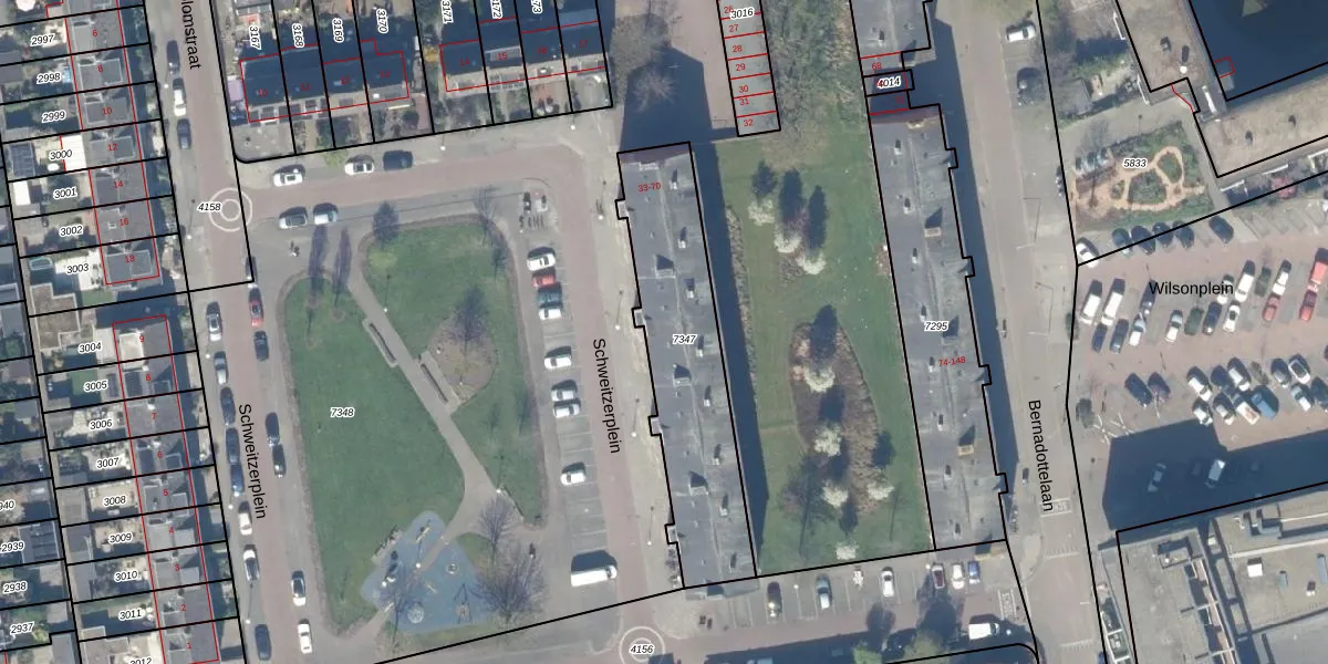 Het perceel waarop Schweitzerplein 46 staat heeft een oppervlakte van 743 m². Dit is een groot perceel. De perceeloppervlakte wordt geregistreerd door het Kadaster. Gedetailleerde informatie over de maten van dit perceel kunt u vinden in het rapport Kadastrale kaart met maatvoering van Schweitzerplein 46.