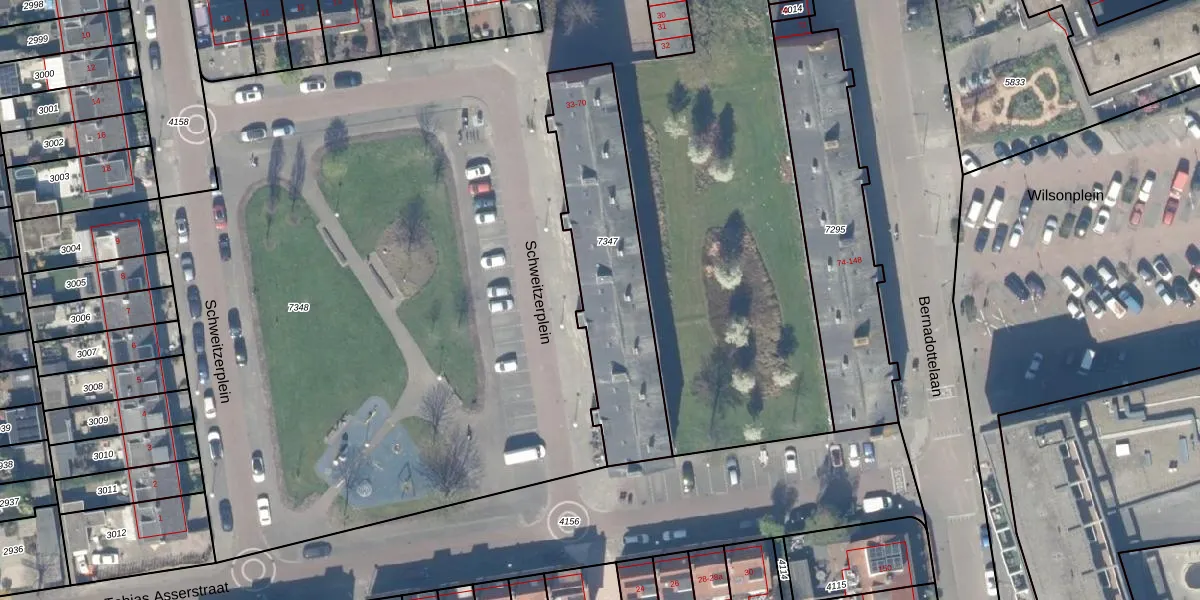 Het perceel waarop Schweitzerplein 55 staat heeft een oppervlakte van 743 m². Dit is een groot perceel. De perceeloppervlakte wordt geregistreerd door het Kadaster. Gedetailleerde informatie over de maten van dit perceel kunt u vinden in het rapport Kadastrale kaart met maatvoering van Schweitzerplein 55.
