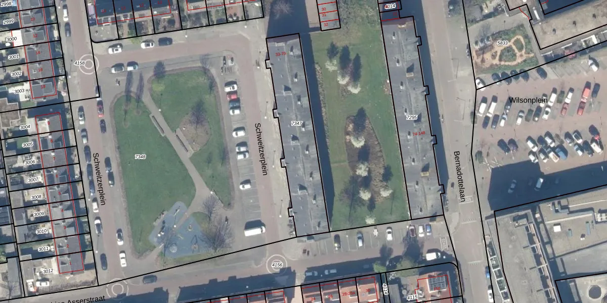 Het perceel waarop Schweitzerplein 59 staat heeft een oppervlakte van 743 m². Dit is een groot perceel. De perceeloppervlakte wordt geregistreerd door het Kadaster. Gedetailleerde informatie over de maten van dit perceel kunt u vinden in het rapport Kadastrale kaart met maatvoering van Schweitzerplein 59.