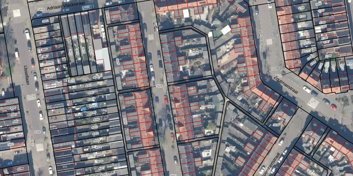 Het adres is gelegen op perceel 5935 in de sectie A en de kadastrale gemeente Gouda. De kadastrale aanduiding is aldus GDA01-A-5935. Het perceel is met 920 m² relatief groot. Het gemiddelde ligt in de kadastrale gemeente Gouda op 678,78 m². Het kleinste perceel in de kadastrale gemeente is 0 m² groot. De grootste perceeloppervlakte is 24,2 ha. Er zijn 7 adressen aanwezig op het perceel. In de Basisregistratie Kadaster (BRK) werden de grenzen van het perceel geregistreerd op 05-02-1998.