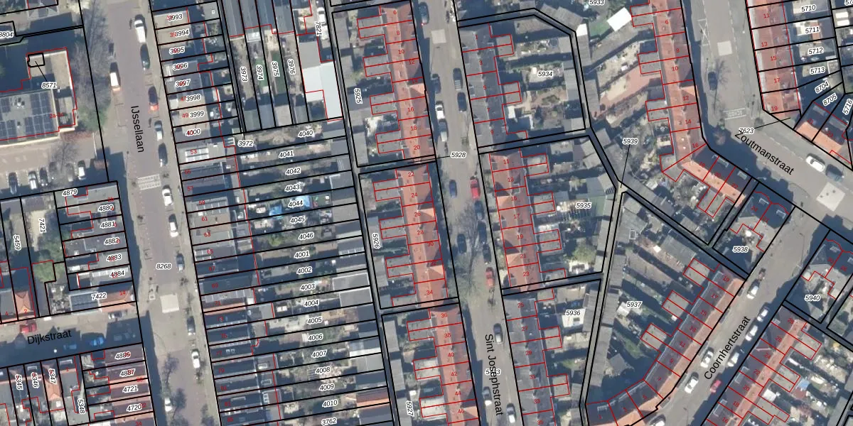 Sint Josephstraat 26 is gelegen op kadastraal perceel GDA01A5926. Deze kadastrale aanduiding is uniek en wordt gebruikt door het Kadaster om eigendomsrechten en andere zakelijke rechten vast te leggen. Het perceel maakt onderdeel uit van de kadastrale gemeente Gouda.