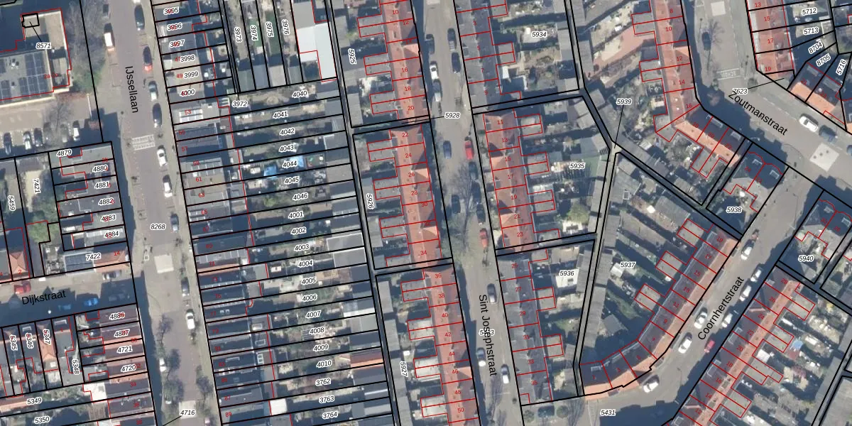 Sint Josephstraat 30 is gelegen op kadastraal perceel GDA01A5926. Deze kadastrale aanduiding is uniek en wordt gebruikt door het Kadaster om eigendomsrechten en andere zakelijke rechten vast te leggen. Het perceel maakt onderdeel uit van de kadastrale gemeente Gouda.