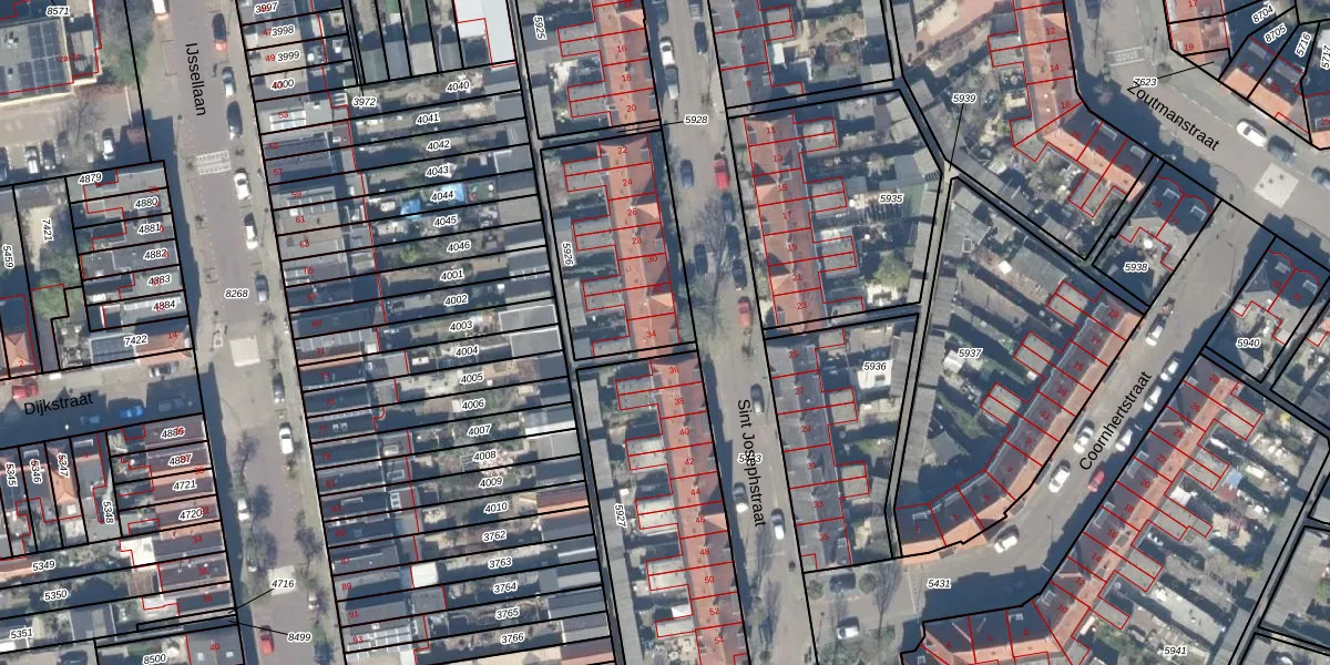 Sint Josephstraat 34 is gelegen op kadastraal perceel GDA01A5926. Deze kadastrale aanduiding is uniek en wordt gebruikt door het Kadaster om eigendomsrechten en andere zakelijke rechten vast te leggen. Het perceel maakt onderdeel uit van de kadastrale gemeente Gouda.