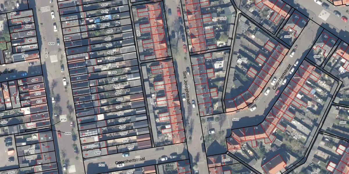 Sint Josephstraat 42 is gelegen op kadastraal perceel GDA01A5927. Deze kadastrale aanduiding is uniek en wordt gebruikt door het Kadaster om eigendomsrechten en andere zakelijke rechten vast te leggen. Het perceel maakt onderdeel uit van de kadastrale gemeente Gouda.