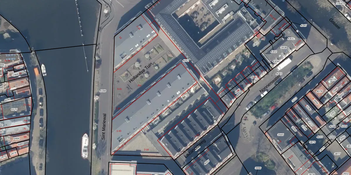 Sint Mariewal 29 is gelegen op kadastraal perceel GDA01D4052. Deze kadastrale aanduiding is uniek en wordt gebruikt door het Kadaster om eigendomsrechten en andere zakelijke rechten vast te leggen. Het perceel maakt onderdeel uit van de kadastrale gemeente Gouda.