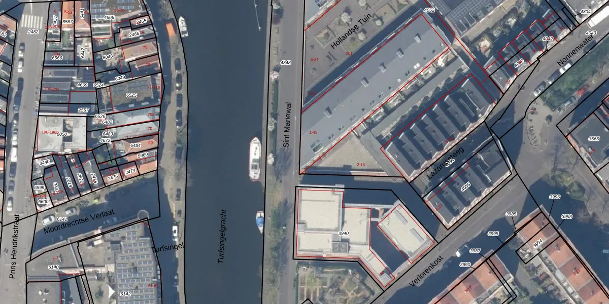 Het perceel waarop Sint Mariewal 43 staat heeft een oppervlakte van 6310 m². Dit is een zeer groot perceel. De perceeloppervlakte wordt geregistreerd door het Kadaster. Gedetailleerde informatie over de maten van dit perceel kunt u vinden in het rapport Kadastrale kaart met maatvoering van Sint Mariewal 43.