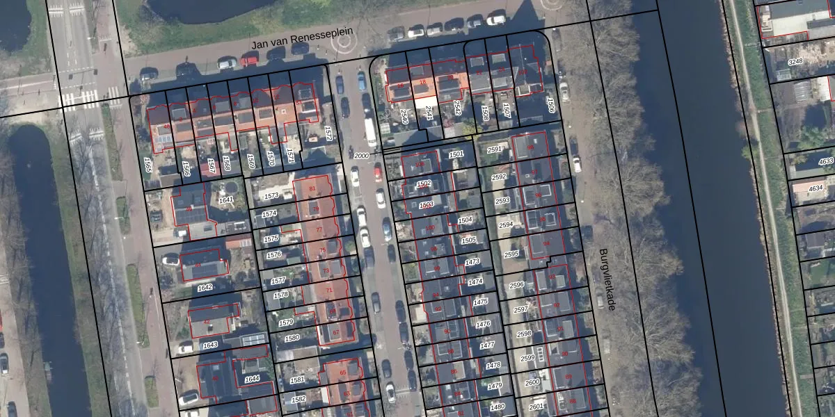 Gebruik de zoekbalk of klik op een perceel voor informatie over de adressen binnen dit perceel.