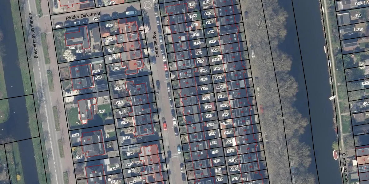 Sophiastraat 34 is gelegen op kadastraal perceel GDA01I1362. Deze kadastrale aanduiding is uniek en wordt gebruikt door het Kadaster om eigendomsrechten en andere zakelijke rechten vast te leggen. Het perceel maakt onderdeel uit van de kadastrale gemeente Gouda.