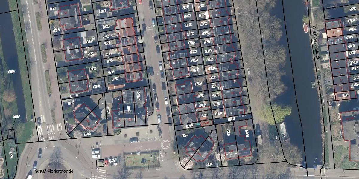 Het adres is gelegen op perceel 1355 in de sectie I en de kadastrale gemeente Gouda. De kadastrale aanduiding is aldus GDA01-I-1355. De gemiddelde perceelgrootte in Gouda is 681,36 m². Dit perceel is kleiner: de perceeloppervlakte bedraagt 188 m². Het kleinste perceel in de kadastrale gemeente is 0 m² groot. De grootste perceeloppervlakte is 24,2 ha. Dit is het enige adres dat aanwezig is op het perceel. De huidige grenzen van het perceel zijn digitaal in de Basisregistratie Kadaster (BRK) geregistreerd op 05-02-1998.
