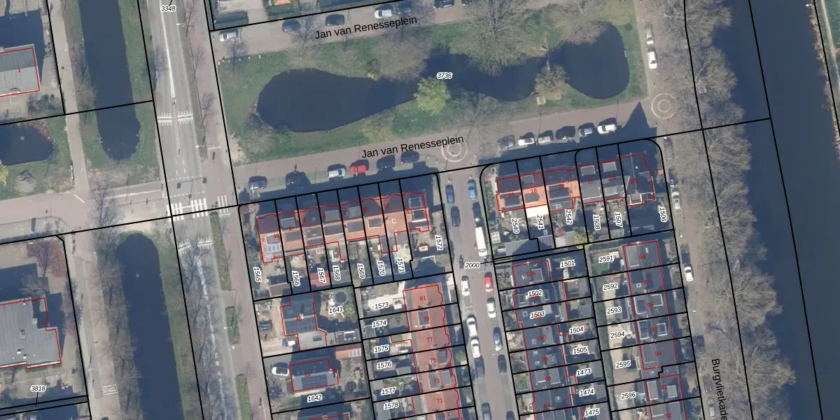 Het adres is gelegen op perceel 1572 in de sectie I en de kadastrale gemeente Gouda. De kadastrale aanduiding is aldus GDA01-I-1572. De gemiddelde perceelgrootte in Gouda is 681,36 m². Dit perceel is kleiner: de perceeloppervlakte bedraagt 220 m². De grootste perceeloppervlakte in de kadastrale gemeente is 24,2 ha. De kleinste oppervlakte bedraagt 0 m². Er zijn geen andere adressen aanwezig op het perceel. In de Basisregistratie Kadaster (BRK) werden de grenzen van het perceel geregistreerd op 13-09-2005.