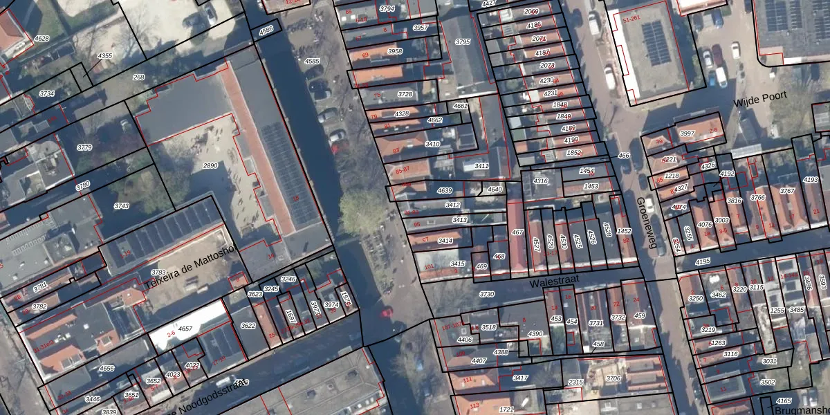 Het adres is gelegen op perceel 3412 in de sectie C en de kadastrale gemeente Gouda. De kadastrale aanduiding is aldus GDA01-C-3412. De gemiddelde perceelgrootte in Gouda is 680,11 m². Dit perceel is kleiner: de perceeloppervlakte bedraagt 100 m². Het grootste perceel in de kadastrale gemeente is 24,2 ha. Het kleinste perceel heeft een oppervlakte van 0 m². Er zijn 2 adressen aanwezig op het perceel. In de Basisregistratie Kadaster (BRK) werden de grenzen van het perceel geregistreerd op 26-10-2023.