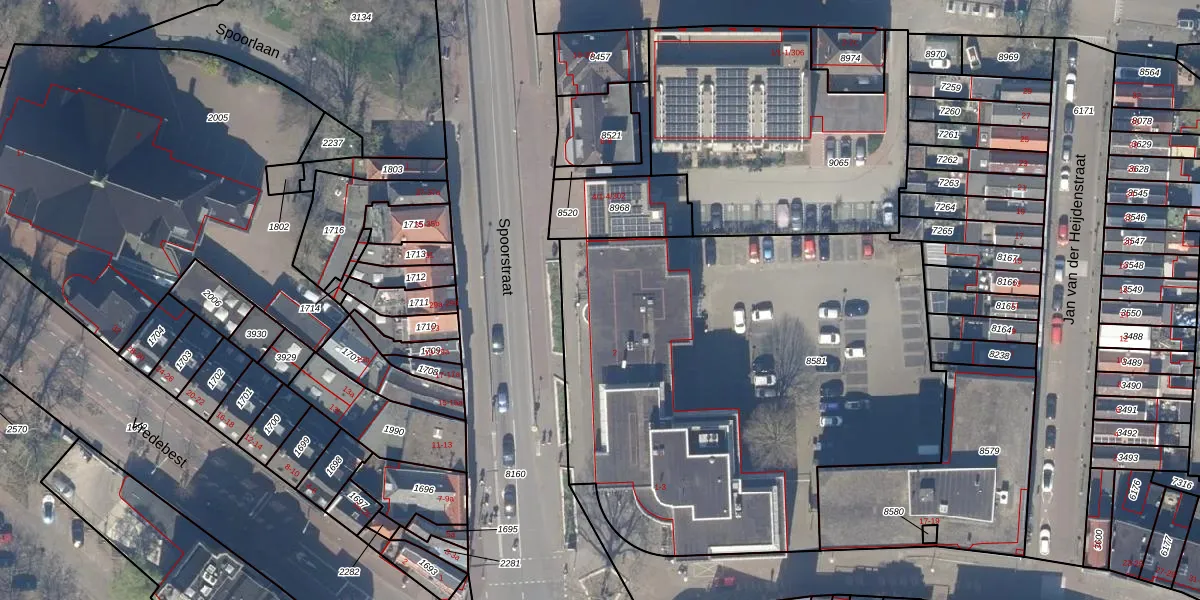 Spoorstraat 2 is gelegen op kadastraal perceel GDA01A8581. Deze kadastrale aanduiding is uniek en wordt gebruikt door het Kadaster om eigendomsrechten en andere zakelijke rechten vast te leggen. Het perceel maakt onderdeel uit van de kadastrale gemeente Gouda.