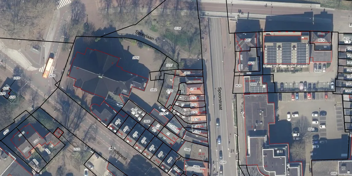 Spoorstraat 33 is gelegen op kadastraal perceel GDA01H1716. Deze kadastrale aanduiding is uniek en wordt gebruikt door het Kadaster om eigendomsrechten en andere zakelijke rechten vast te leggen. Het perceel maakt onderdeel uit van de kadastrale gemeente Gouda.