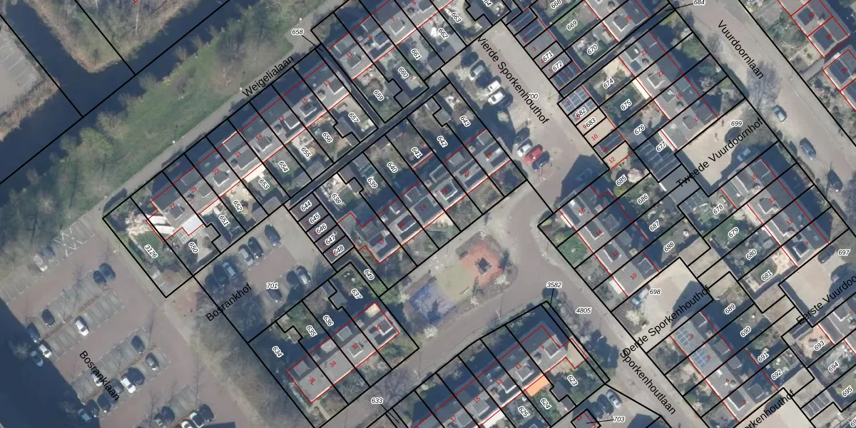 Sporkenhoutlaan 24 is gelegen op kadastraal perceel GDA01M640. Deze kadastrale aanduiding is uniek en wordt gebruikt door het Kadaster om eigendomsrechten en andere zakelijke rechten vast te leggen. Het perceel maakt onderdeel uit van de kadastrale gemeente Gouda.