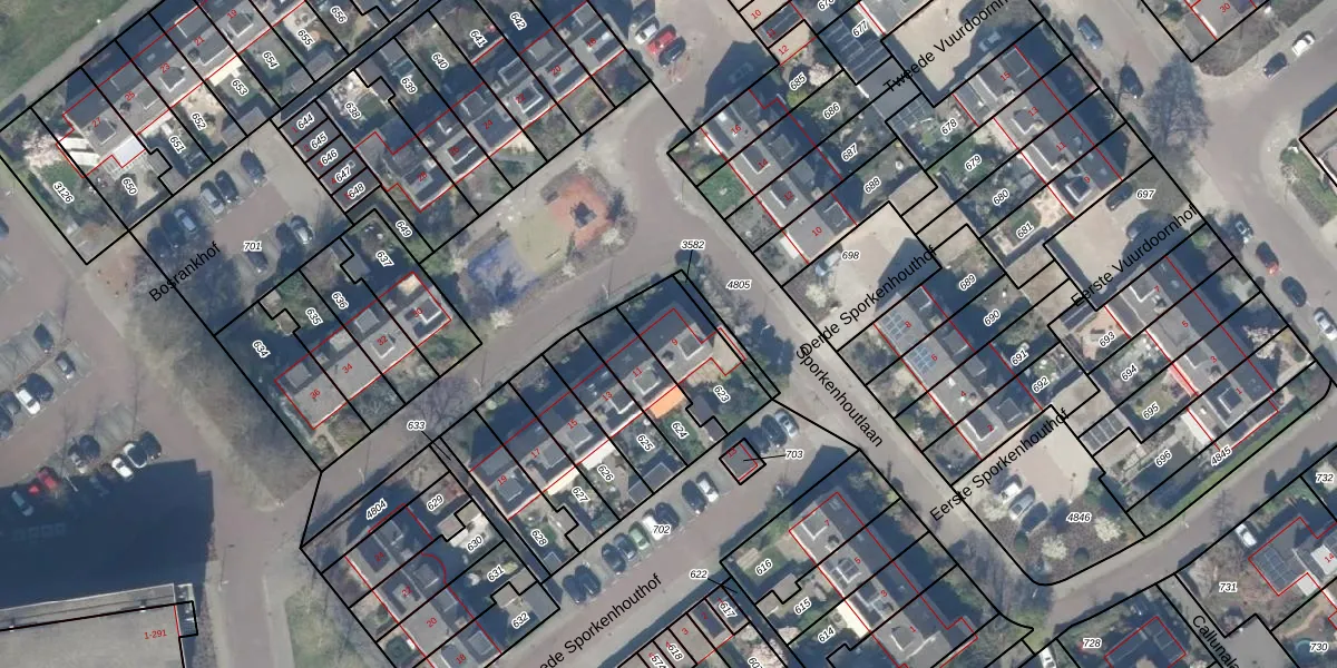 Sporkenhoutlaan 9 is gelegen op kadastraal perceel GDA01M623. Deze kadastrale aanduiding is uniek en wordt gebruikt door het Kadaster om eigendomsrechten en andere zakelijke rechten vast te leggen. Het perceel maakt onderdeel uit van de kadastrale gemeente Gouda.
