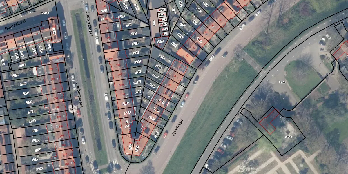 Sportlaan 25 is gelegen op kadastraal perceel GDA01K2227. Deze kadastrale aanduiding is uniek en wordt gebruikt door het Kadaster om eigendomsrechten en andere zakelijke rechten vast te leggen. Het perceel maakt onderdeel uit van de kadastrale gemeente Gouda.