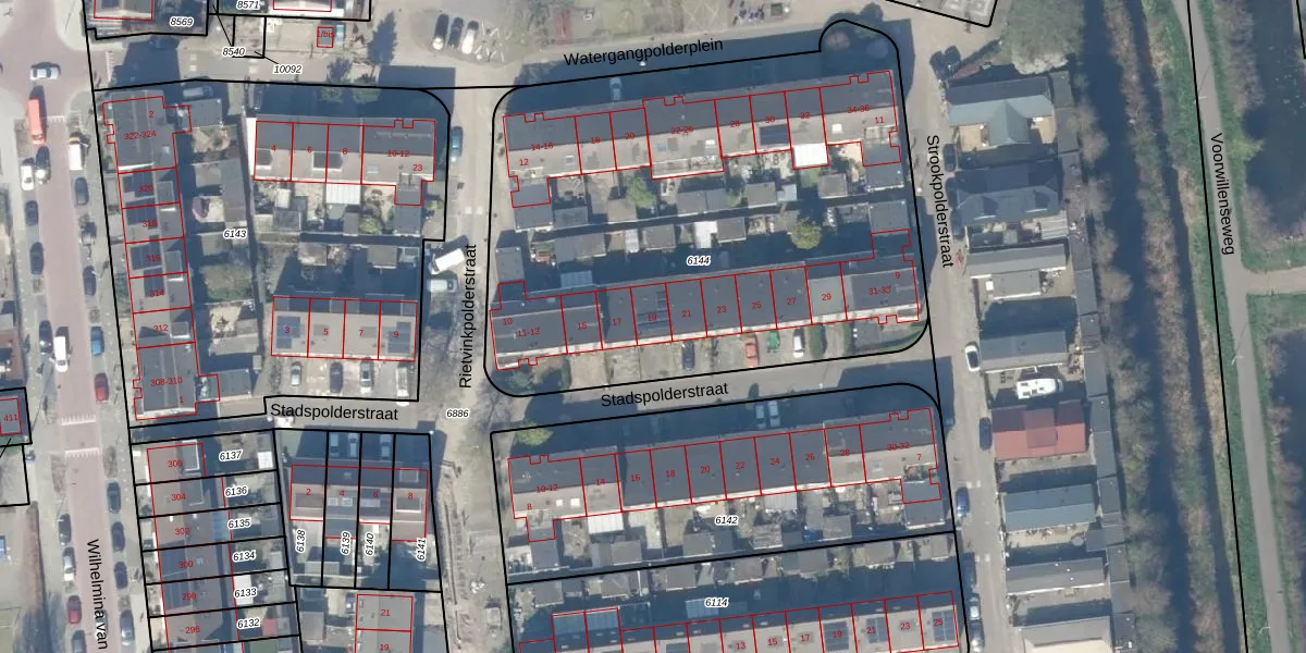 Stadspolderstraat 19 is gelegen op kadastraal perceel GDA01K6144. Deze kadastrale aanduiding is uniek en wordt gebruikt door het Kadaster om eigendomsrechten en andere zakelijke rechten vast te leggen. Het perceel maakt onderdeel uit van de kadastrale gemeente Gouda.