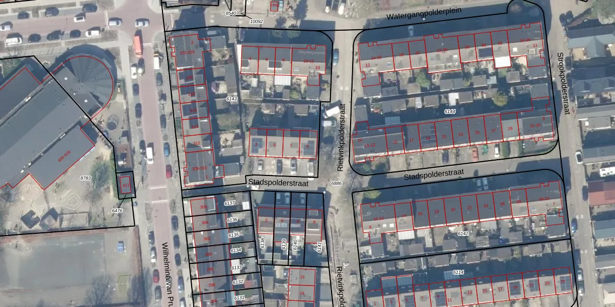 Stadspolderstraat 9 is gelegen op kadastraal perceel GDA01K6143. Deze kadastrale aanduiding is uniek en wordt gebruikt door het Kadaster om eigendomsrechten en andere zakelijke rechten vast te leggen. Het perceel maakt onderdeel uit van de kadastrale gemeente Gouda.