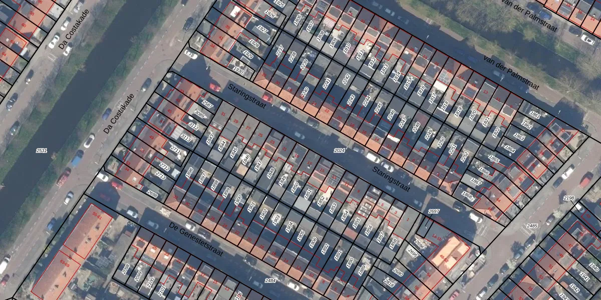 Staringstraat 19 is gelegen op kadastraal perceel GDA01F1849. Deze kadastrale aanduiding is uniek en wordt gebruikt door het Kadaster om eigendomsrechten en andere zakelijke rechten vast te leggen. Het perceel maakt onderdeel uit van de kadastrale gemeente Gouda.