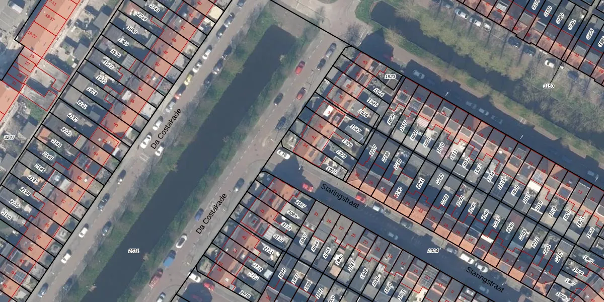Gebruik de zoekbalk of klik op een perceel voor informatie over de adressen binnen dit perceel.