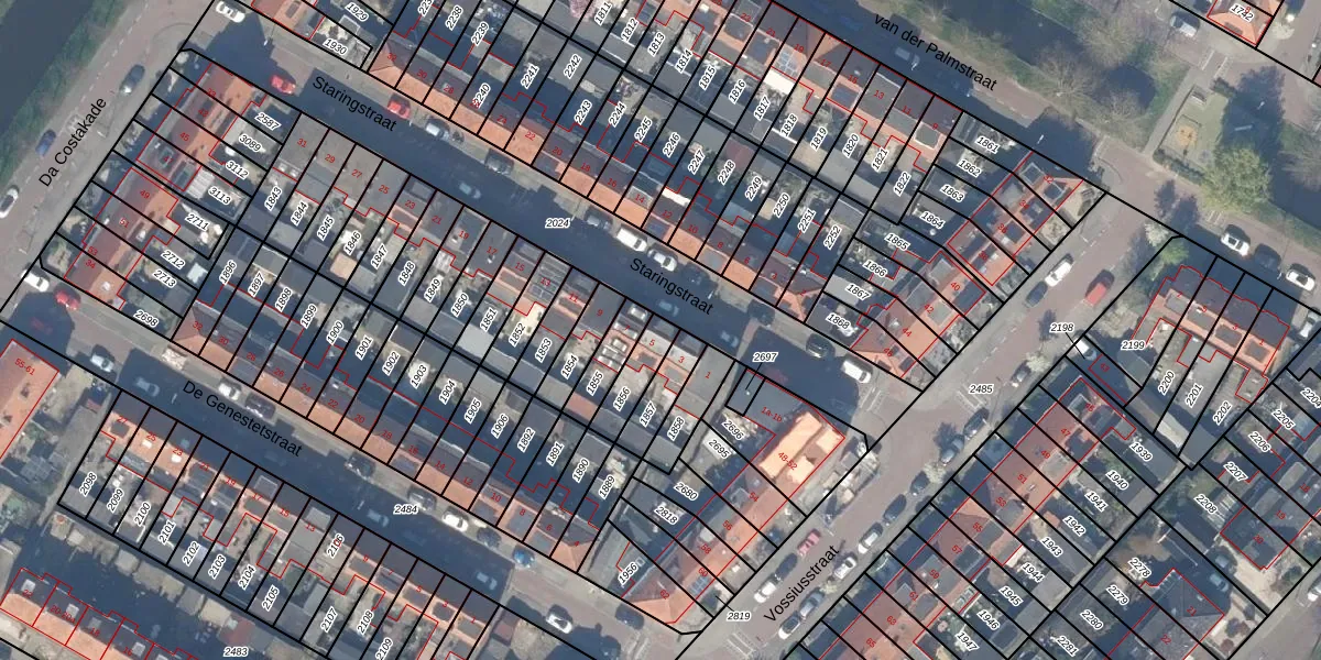 Gebruik de zoekbalk of klik op een perceel voor informatie over de adressen binnen dit perceel.