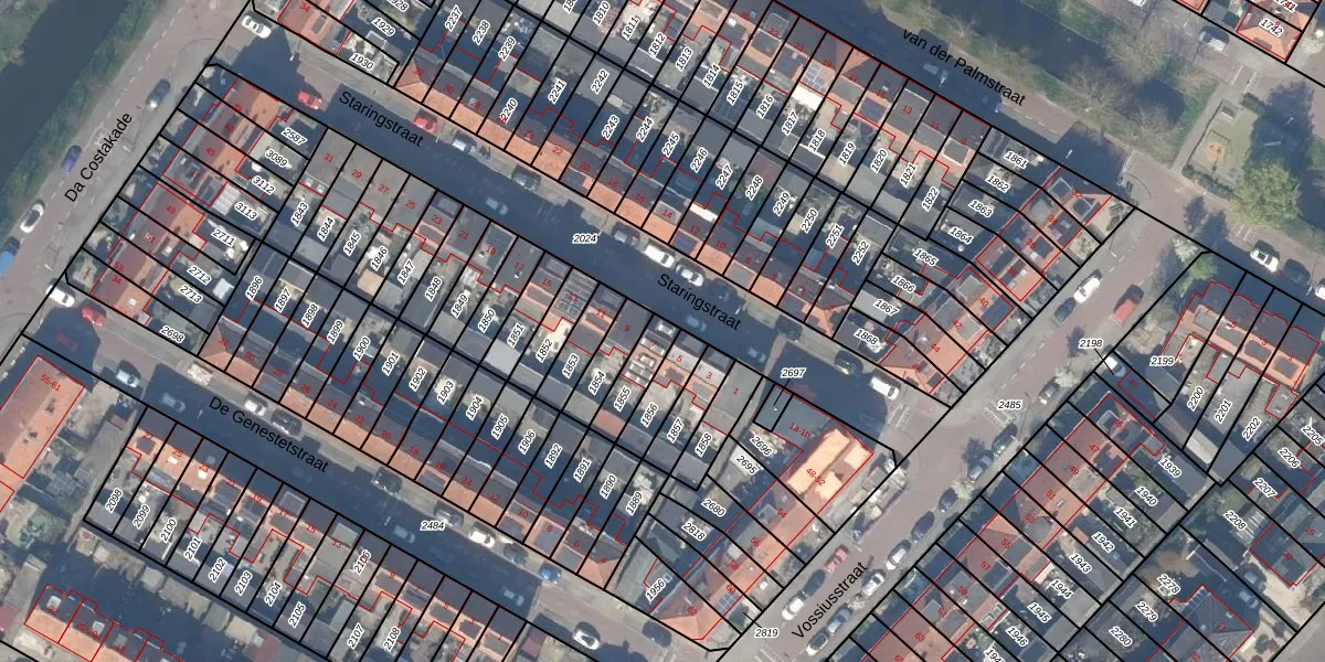 Het perceel waarop Staringstraat 7 staat heeft een oppervlakte van 94 m². Dit is een klein perceel. De perceeloppervlakte wordt geregistreerd door het Kadaster. Gedetailleerde informatie over de maten van dit perceel kunt u vinden in het rapport Kadastrale kaart met maatvoering van Staringstraat 7.