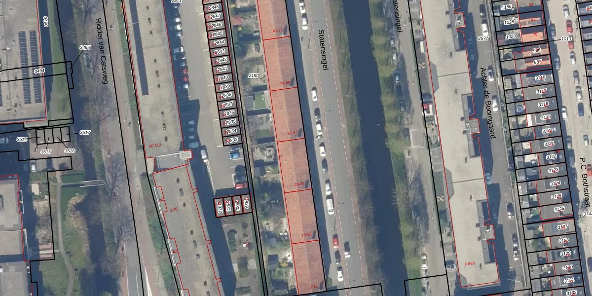 Statensingel 33 is gelegen op kadastraal perceel GDA01I2190. Deze kadastrale aanduiding is uniek en wordt gebruikt door het Kadaster om eigendomsrechten en andere zakelijke rechten vast te leggen. Het perceel maakt onderdeel uit van de kadastrale gemeente Gouda.