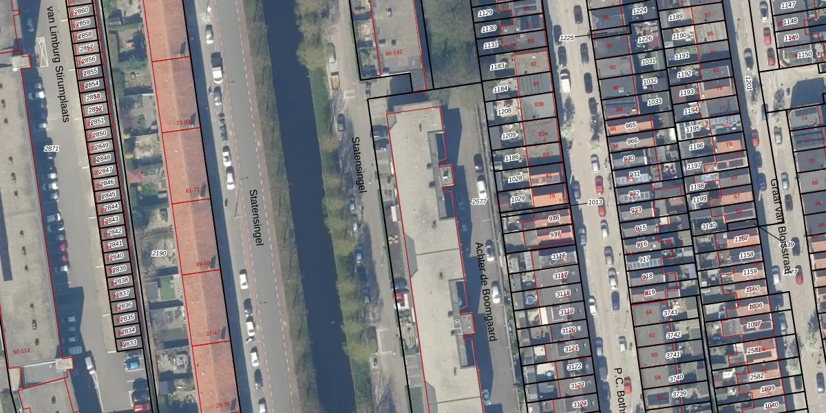 Het perceel waarop Statensingel 64 staat heeft een oppervlakte van 3212 m². Dit is een zeer groot perceel. De perceeloppervlakte wordt geregistreerd door het Kadaster. Gedetailleerde informatie over de maten van dit perceel kunt u vinden in het rapport Kadastrale kaart met maatvoering van Statensingel 64.