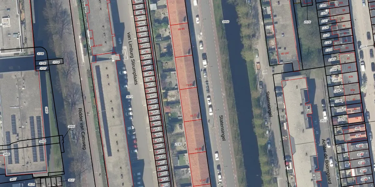 Het perceel waarop Statensingel 71 staat heeft een oppervlakte van 3100 m². Dit is een zeer groot perceel. De perceeloppervlakte wordt geregistreerd door het Kadaster. Gedetailleerde informatie over de maten van dit perceel kunt u vinden in het rapport Kadastrale kaart met maatvoering van Statensingel 71.