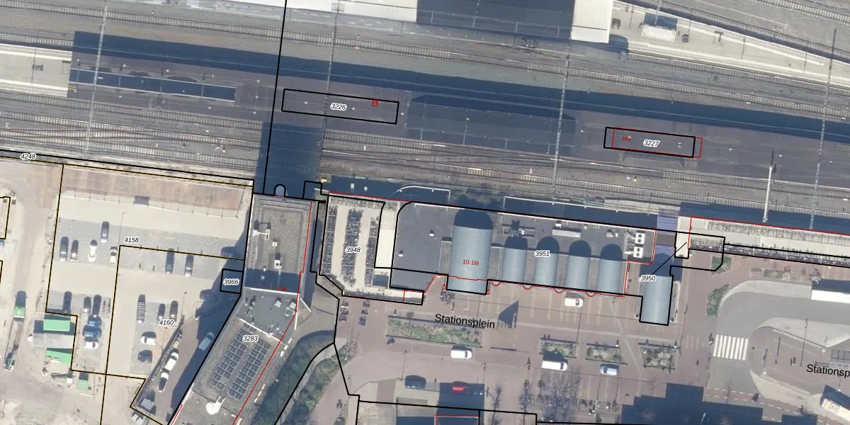 Het perceel waarop Stationsplein 16-d staat heeft een oppervlakte van 1171 m². Dit is een zeer groot perceel. De perceeloppervlakte wordt geregistreerd door het Kadaster. Gedetailleerde informatie over de maten van dit perceel kunt u vinden in het rapport Kadastrale kaart met maatvoering van Stationsplein 16-d.