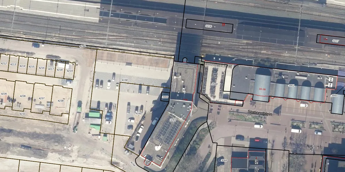 Het perceel waarop Stationsplein 9-d staat heeft een oppervlakte van 1420 m². Dit is een zeer groot perceel. De perceeloppervlakte wordt geregistreerd door het Kadaster. Gedetailleerde informatie over de maten van dit perceel kunt u vinden in het rapport Kadastrale kaart met maatvoering van Stationsplein 9-d.