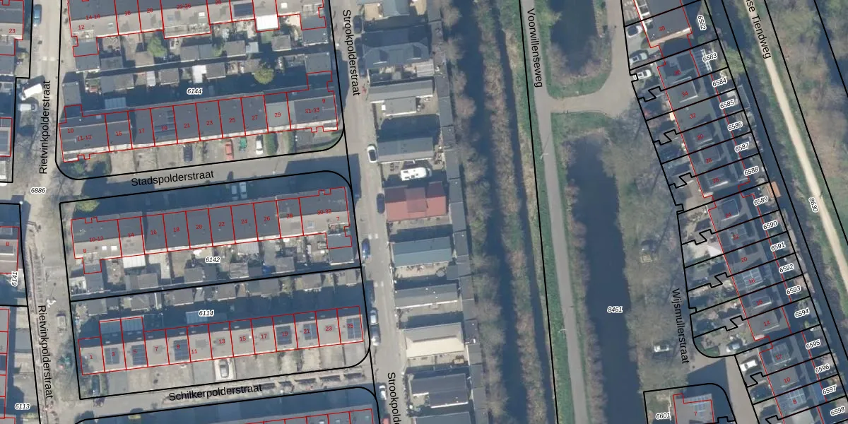 Strookpolderstraat 16 is gelegen op kadastraal perceel GDA01K10091. Deze kadastrale aanduiding is uniek en wordt gebruikt door het Kadaster om eigendomsrechten en andere zakelijke rechten vast te leggen. Het perceel maakt onderdeel uit van de kadastrale gemeente Gouda.