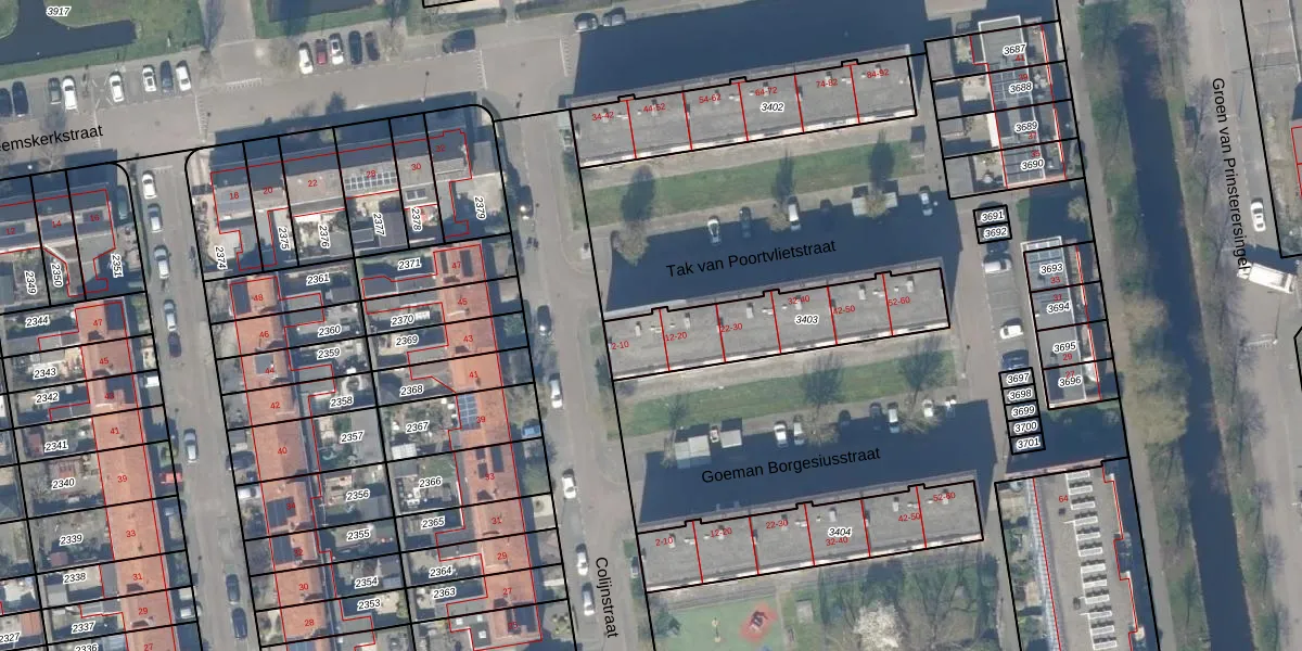 Tak van Poortvlietstraat 6 is gelegen op kadastraal perceel GDA01I3403. Deze kadastrale aanduiding is uniek en wordt gebruikt door het Kadaster om eigendomsrechten en andere zakelijke rechten vast te leggen. Het perceel maakt onderdeel uit van de kadastrale gemeente Gouda.