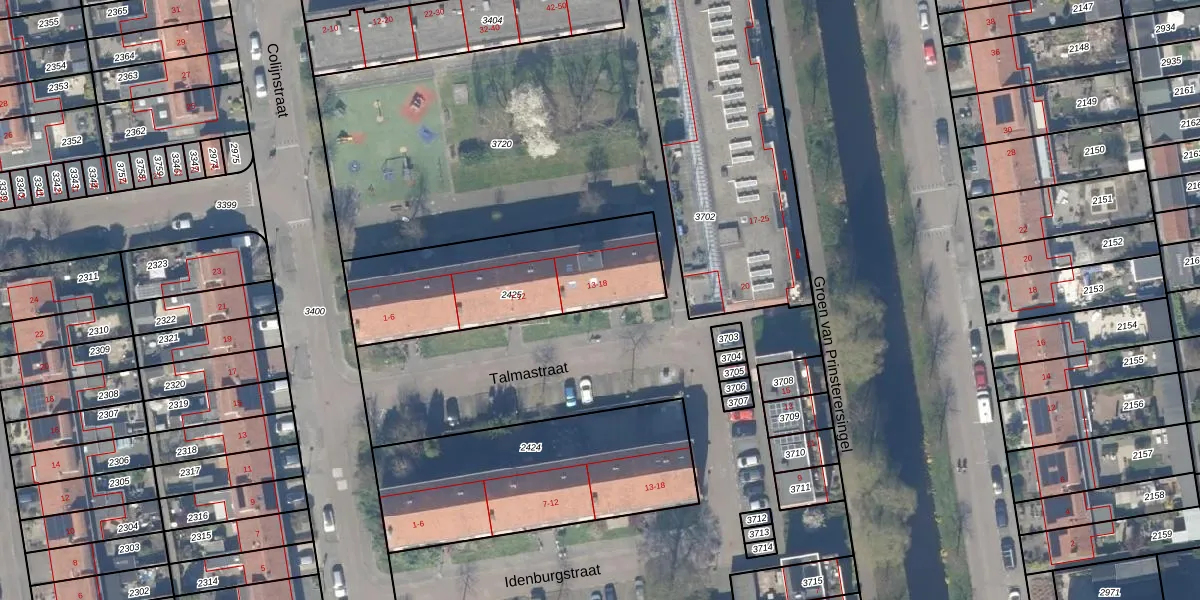 Talmastraat 13 is gelegen op kadastraal perceel GDA01I2425. Deze kadastrale aanduiding is uniek en wordt gebruikt door het Kadaster om eigendomsrechten en andere zakelijke rechten vast te leggen. Het perceel maakt onderdeel uit van de kadastrale gemeente Gouda.