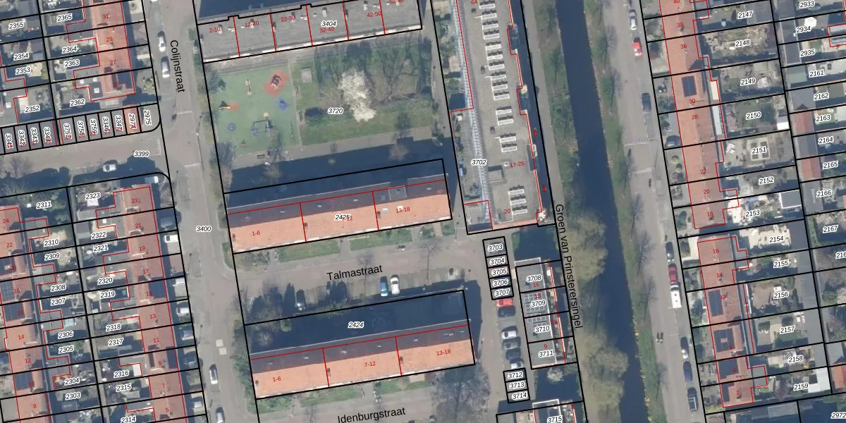 Talmastraat 17 is gelegen op kadastraal perceel GDA01I2425. Deze kadastrale aanduiding is uniek en wordt gebruikt door het Kadaster om eigendomsrechten en andere zakelijke rechten vast te leggen. Het perceel maakt onderdeel uit van de kadastrale gemeente Gouda.