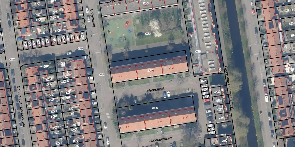 Talmastraat 8 is gelegen op kadastraal perceel GDA01I2425. Deze kadastrale aanduiding is uniek en wordt gebruikt door het Kadaster om eigendomsrechten en andere zakelijke rechten vast te leggen. Het perceel maakt onderdeel uit van de kadastrale gemeente Gouda.