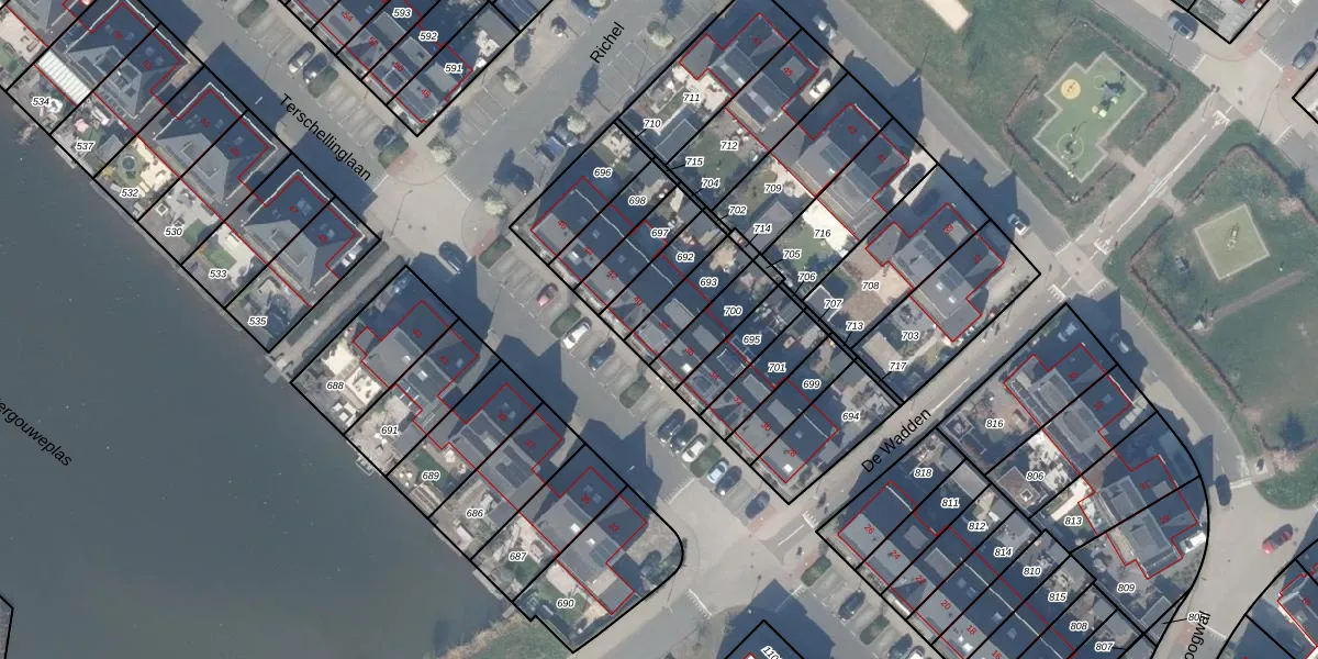 Terschellinglaan 38 is gelegen op kadastraal perceel GDA01N693. Deze kadastrale aanduiding is uniek en wordt gebruikt door het Kadaster om eigendomsrechten en andere zakelijke rechten vast te leggen. Het perceel maakt onderdeel uit van de kadastrale gemeente Gouda.