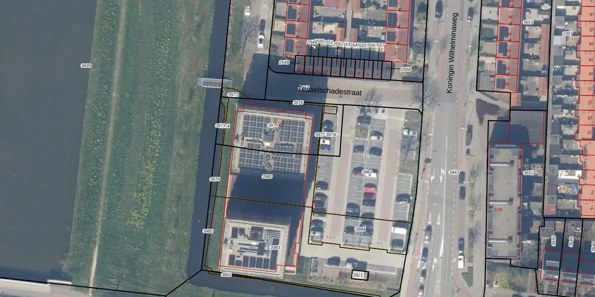 Tesselschadestraat 13 is gelegen op kadastraal perceel GDA01F3975. Deze kadastrale aanduiding is uniek en wordt gebruikt door het Kadaster om eigendomsrechten en andere zakelijke rechten vast te leggen. Het perceel maakt onderdeel uit van de kadastrale gemeente Gouda.