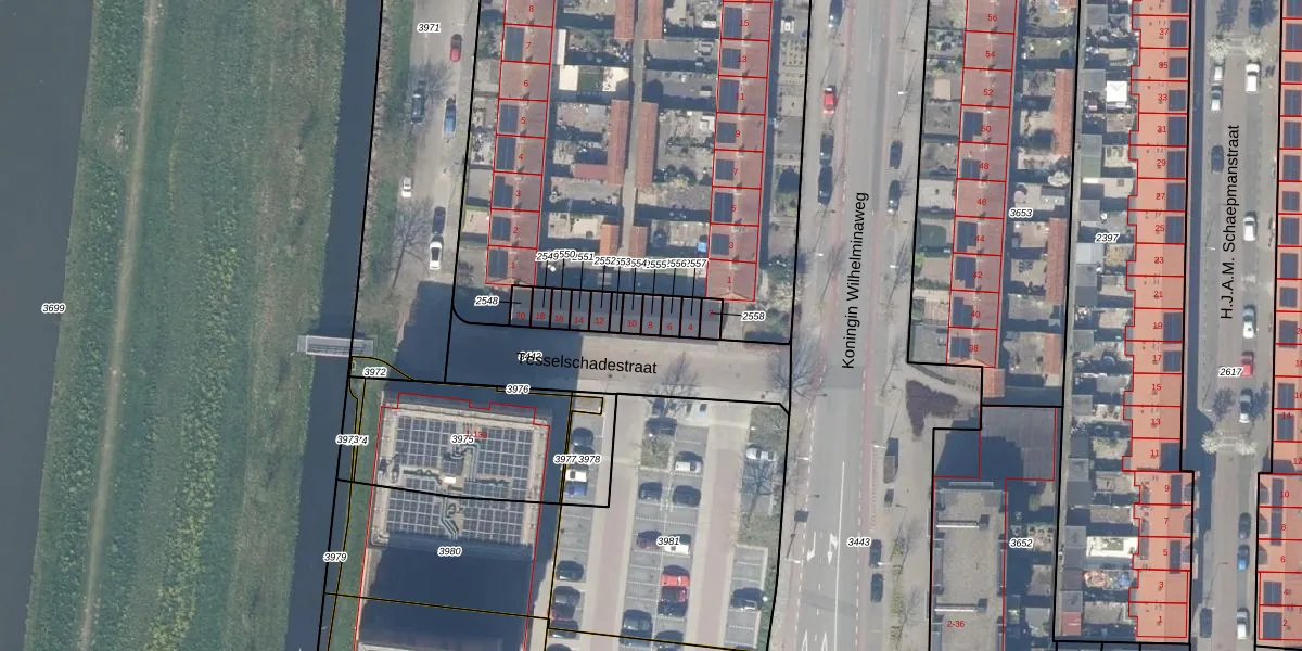 Gebruik de zoekbalk of klik op een perceel voor informatie over de adressen binnen dit perceel.