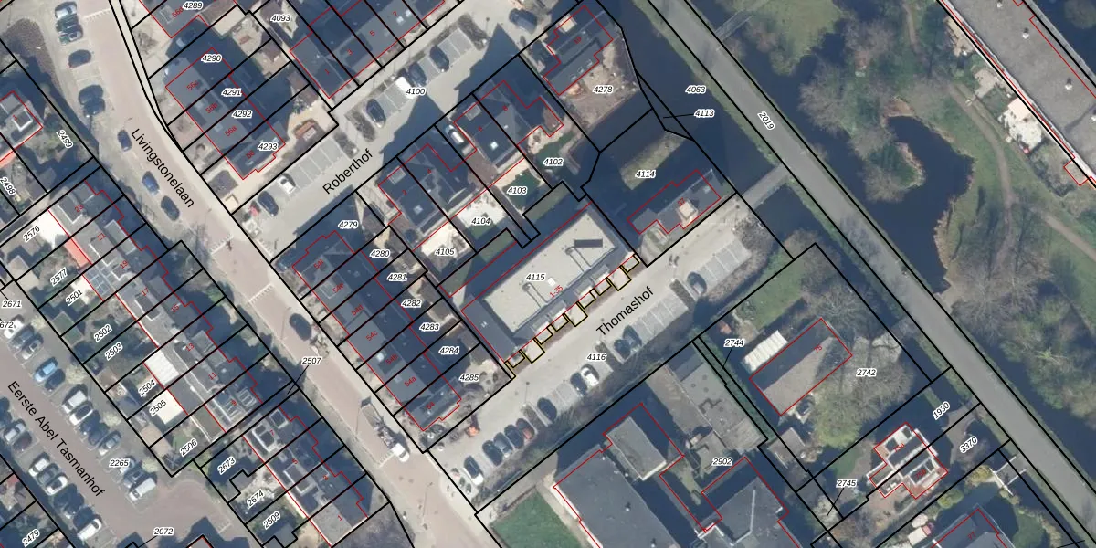 Thomashof 23 is gelegen op kadastraal perceel GDA01H4115. Deze kadastrale aanduiding is uniek en wordt gebruikt door het Kadaster om eigendomsrechten en andere zakelijke rechten vast te leggen. Het perceel maakt onderdeel uit van de kadastrale gemeente Gouda.