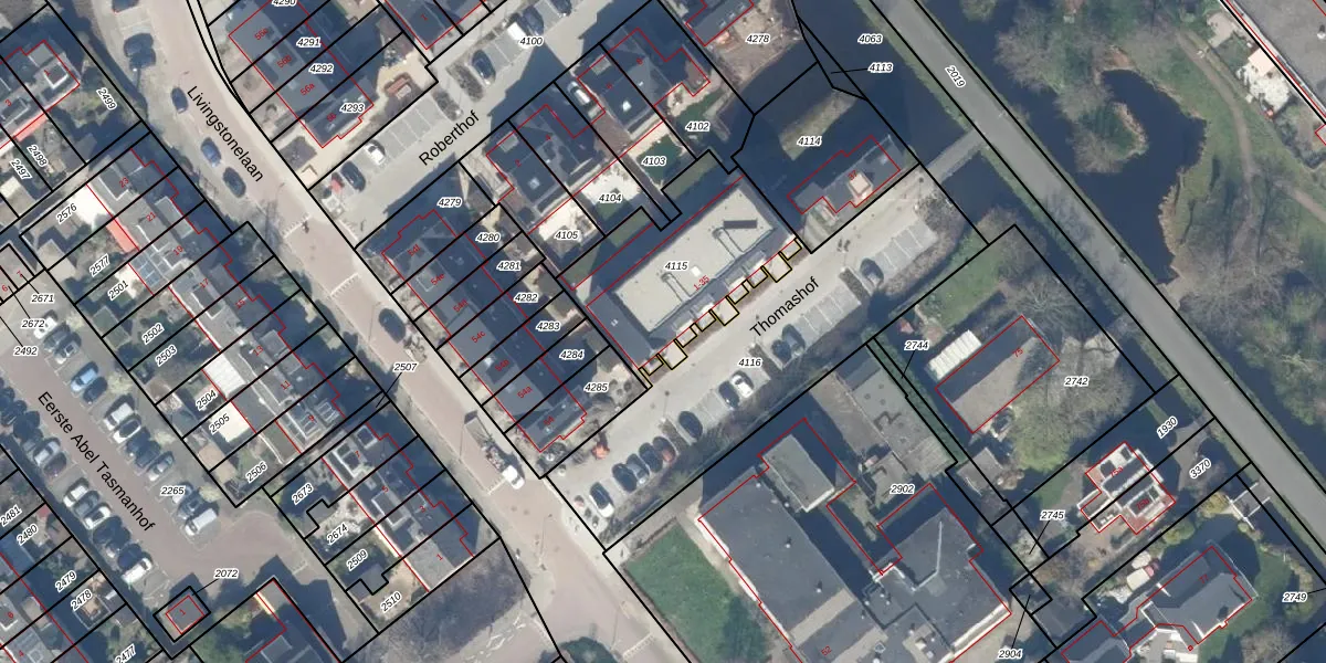 Thomashof 3 is gelegen op kadastraal perceel GDA01H4115. Deze kadastrale aanduiding is uniek en wordt gebruikt door het Kadaster om eigendomsrechten en andere zakelijke rechten vast te leggen. Het perceel maakt onderdeel uit van de kadastrale gemeente Gouda.