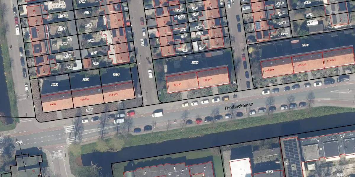 Thorbeckelaan 125 is gelegen op kadastraal perceel GDA01I2184. Deze kadastrale aanduiding is uniek en wordt gebruikt door het Kadaster om eigendomsrechten en andere zakelijke rechten vast te leggen. Het perceel maakt onderdeel uit van de kadastrale gemeente Gouda.