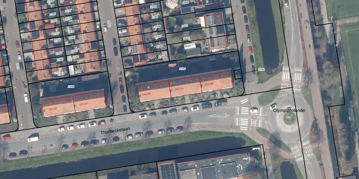 Thorbeckelaan 165 is gelegen op kadastraal perceel GDA01I2793. Deze kadastrale aanduiding is uniek en wordt gebruikt door het Kadaster om eigendomsrechten en andere zakelijke rechten vast te leggen. Het perceel maakt onderdeel uit van de kadastrale gemeente Gouda.