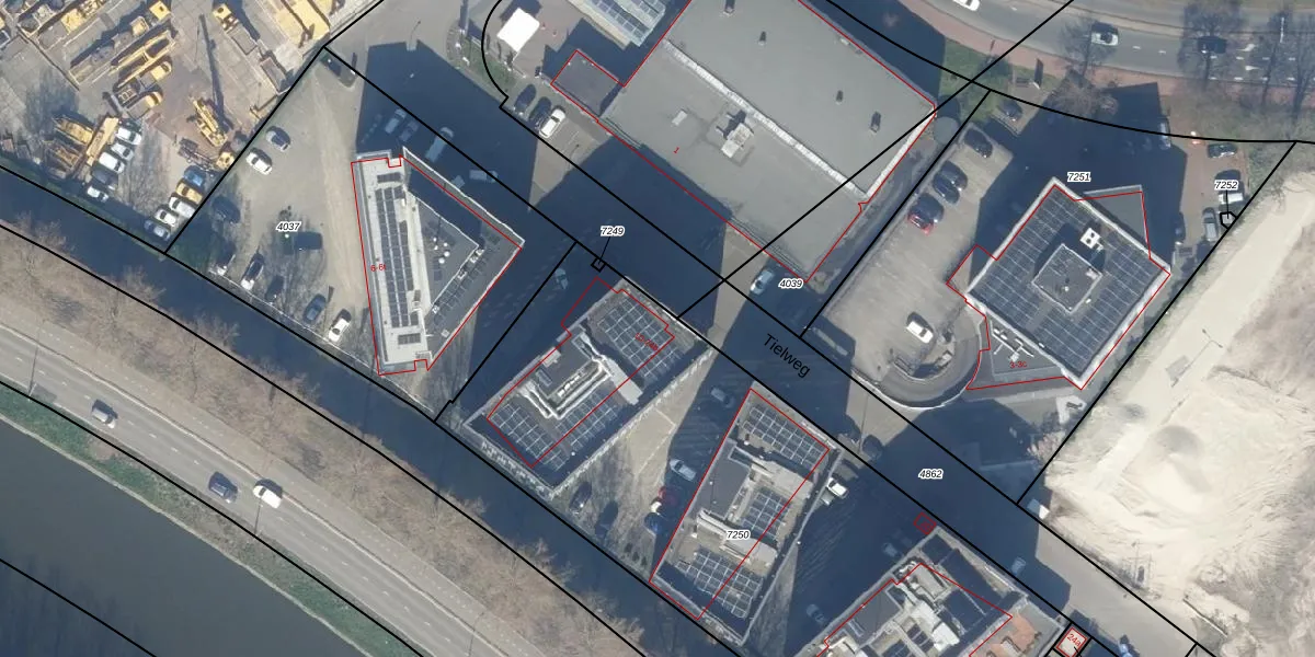 Tielweg 10 is gelegen op kadastraal perceel GDA01M7250. Deze kadastrale aanduiding is uniek en wordt gebruikt door het Kadaster om eigendomsrechten en andere zakelijke rechten vast te leggen. Het perceel maakt onderdeel uit van de kadastrale gemeente Gouda.