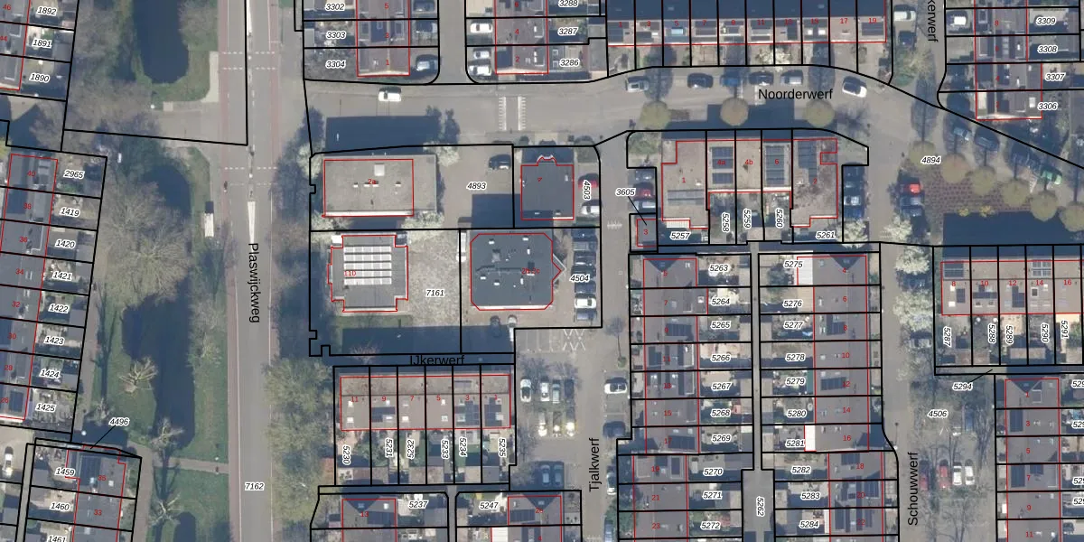 Het perceel waarop Tjalkwerf 2-b staat heeft een oppervlakte van 525 m². Dit is een groot perceel. De perceeloppervlakte wordt geregistreerd door het Kadaster. Gedetailleerde informatie over de maten van dit perceel kunt u vinden in het rapport Kadastrale kaart met maatvoering van Tjalkwerf 2-b.