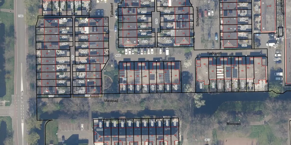 Het perceel waarop Tjalkwerf 28 staat heeft een oppervlakte van 111 m². Dit is een middelgroot perceel. De perceeloppervlakte wordt geregistreerd door het Kadaster. Gedetailleerde informatie over de maten van dit perceel kunt u vinden in het rapport Kadastrale kaart met maatvoering van Tjalkwerf 28.