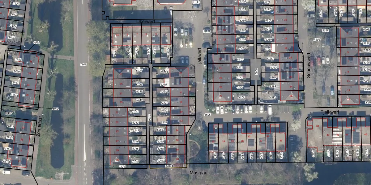 Het perceel waarop Tjalkwerf 6 staat heeft een oppervlakte van 118 m². Dit is een middelgroot perceel. De perceeloppervlakte wordt geregistreerd door het Kadaster. Gedetailleerde informatie over de maten van dit perceel kunt u vinden in het rapport Kadastrale kaart met maatvoering van Tjalkwerf 6.