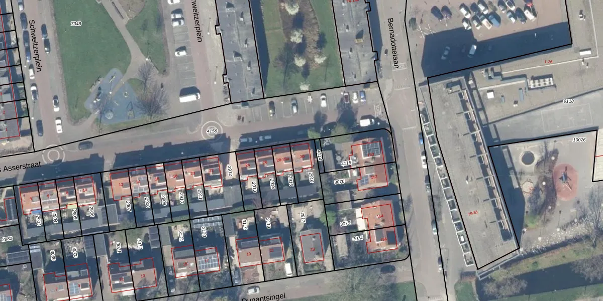 Gebruik de zoekbalk of klik op een perceel voor informatie over de adressen binnen dit perceel.
